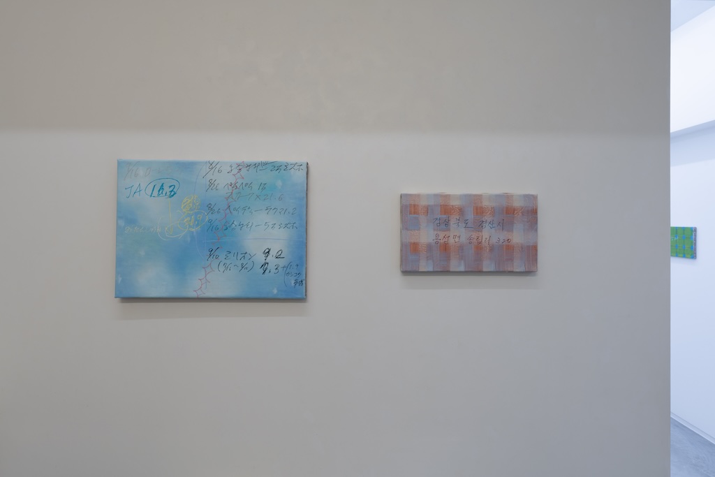 考えていくうちに、「背景」と「文字」を分けて描いてみたいと思うようになりました。背景は背景として一枚の絵にし、文字は文字として一枚に描き、それらを隣り合わせに展示したらどう見えるのか。それを確かめたいと思いました。