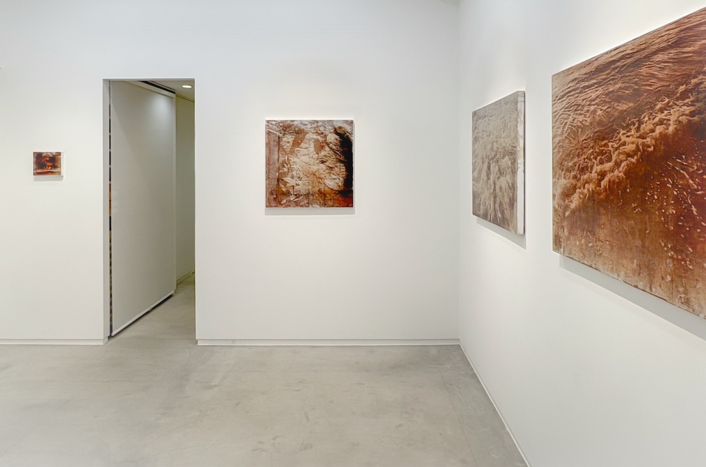 私が制作する「時間を内包する絵画」は、あらゆるものは常に変化するという考えに基づいてる。具体的には、錆びて変色する銀箔、酸化し黄変するオイル、褪色する写真の感光剤など、環境の影響を受けやすい素材を用いる。光や空気、温湿度などに応じて、数年、あるいは数十年をかけ作品の見た目は変化していく。